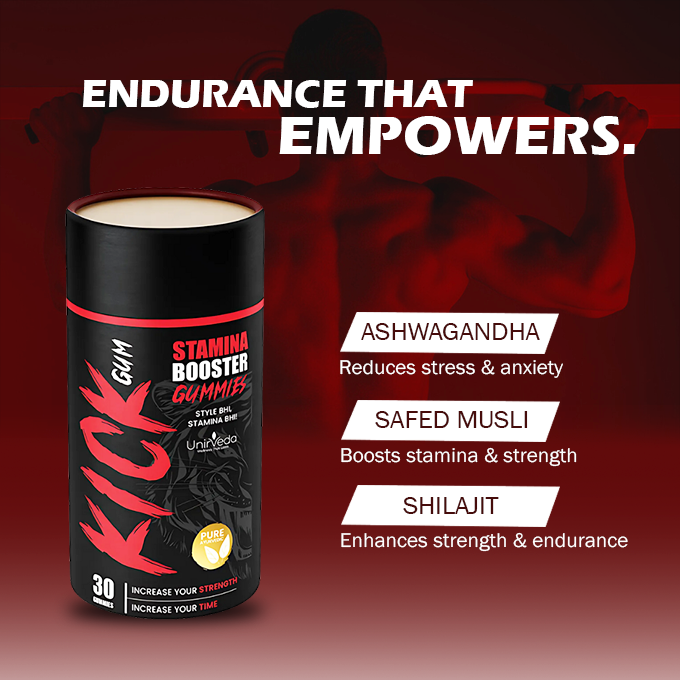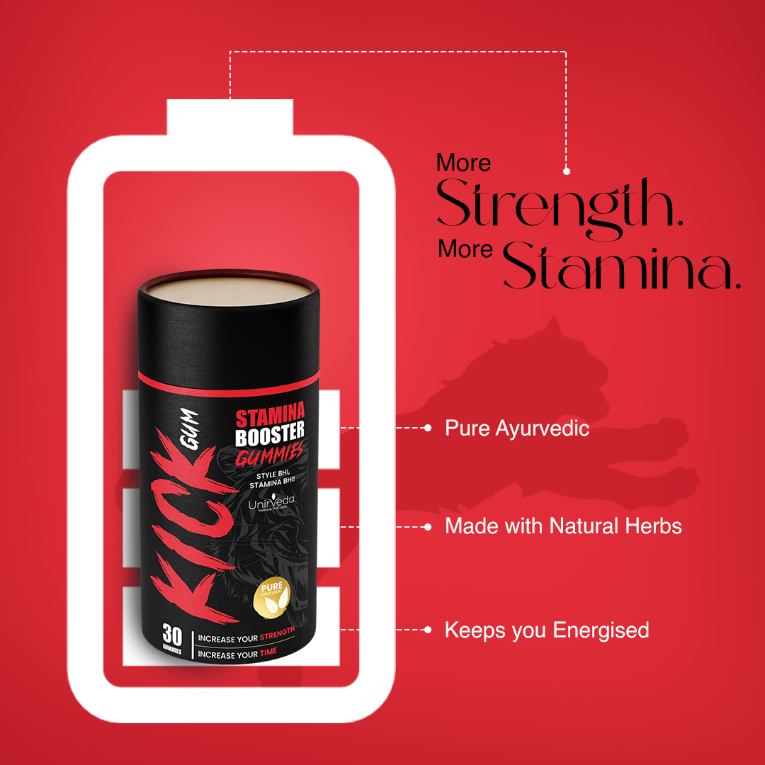 Introducing Kick Gym Stamina Booster Gummies, an Ayurvedic energy solution packed with time-tested herbs like Ashwagandha, Safed Musli, and Shilajit. These ingredients have been used for centuries to boost strength, endurance, and overall performance both physically and mentally.